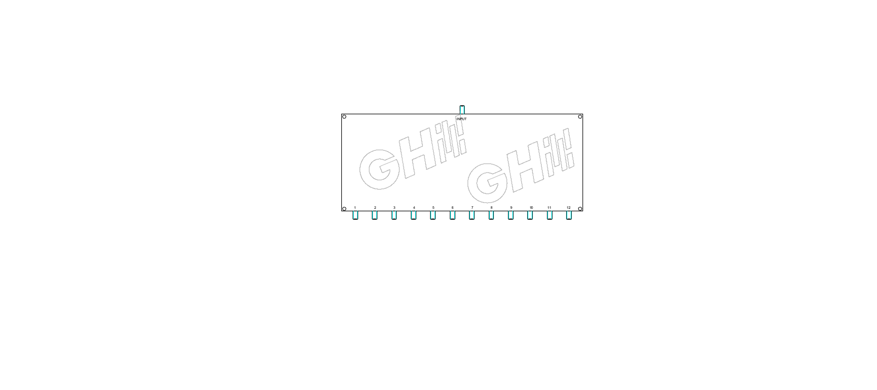 GHPD12S–2.5–5G 12 way SMA power divider (also known as a SMA coaxial power splitter) is rated for a minimum frequency of 2.5 GHz and a maximum frequency of 5 GHz. This Goghel 12 port SMA power divider / coaxial splitter has a 50 Ohm impedance and a maxium input power of 20 Watts(cw). Our SMA coaxial RF splitter / divider has a female SMA input and 16 female SMA output ports.
