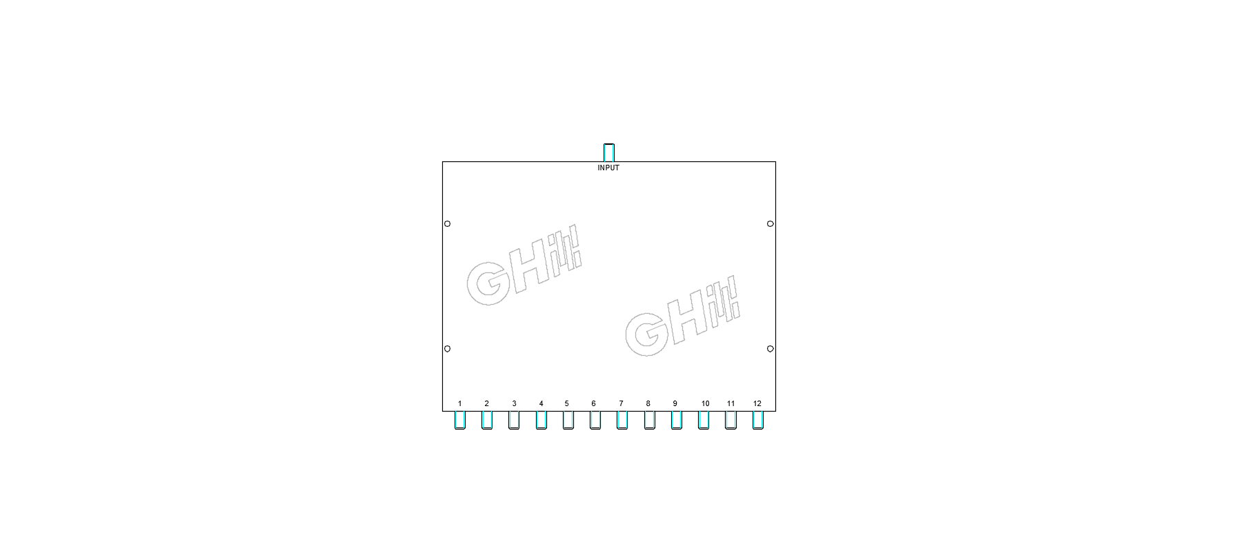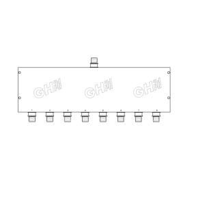 GHPD12S28G 12 way SMA power divider (also known as a SMA coaxial power splitter) is rated for a minimum frequency of 2 GHz and a maximum frequency of 8 GHz. This Goghel 12 port SMA power divider / coaxial splitter has a 50 Ohm impedance and a maxium input power of 20 Watts(cw). Our SMA coaxial RF splitter / divider has a female SMA input and 12 female SMA output ports.