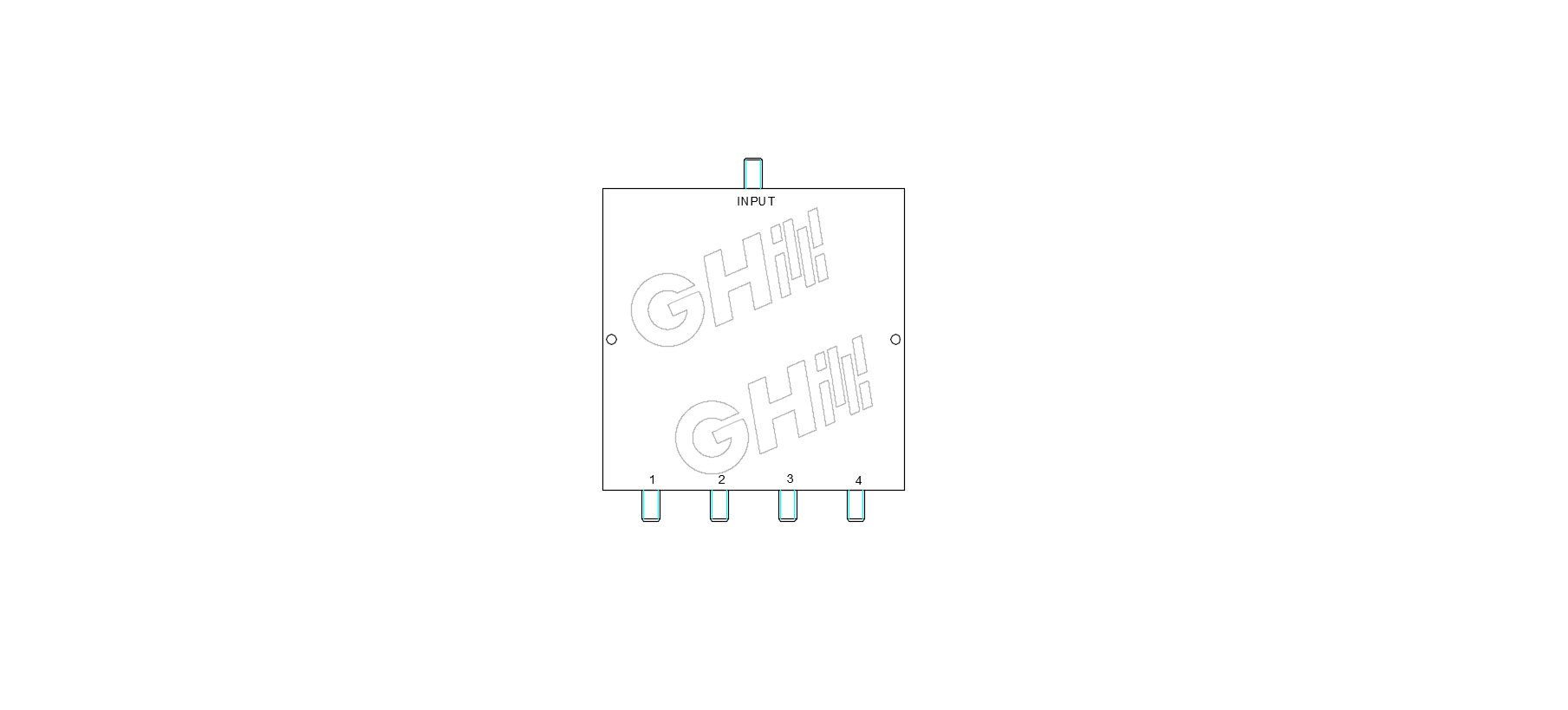 GHPD4S–0.5–2.5G 4 way SMA power divider (also known as a SMA coaxial power splitter) is rated for a minimum frequency of 0.5 GHz and a maximum frequency of 2.5 GHz. This Goghel 4 port SMA power divider / coaxial splitter has a 50 Ohm impedance and a maxium input power of 10 Watts(cw). Our SMA coaxial RF splitter / divider has a female SMA type input and 4 female SMA output ports.